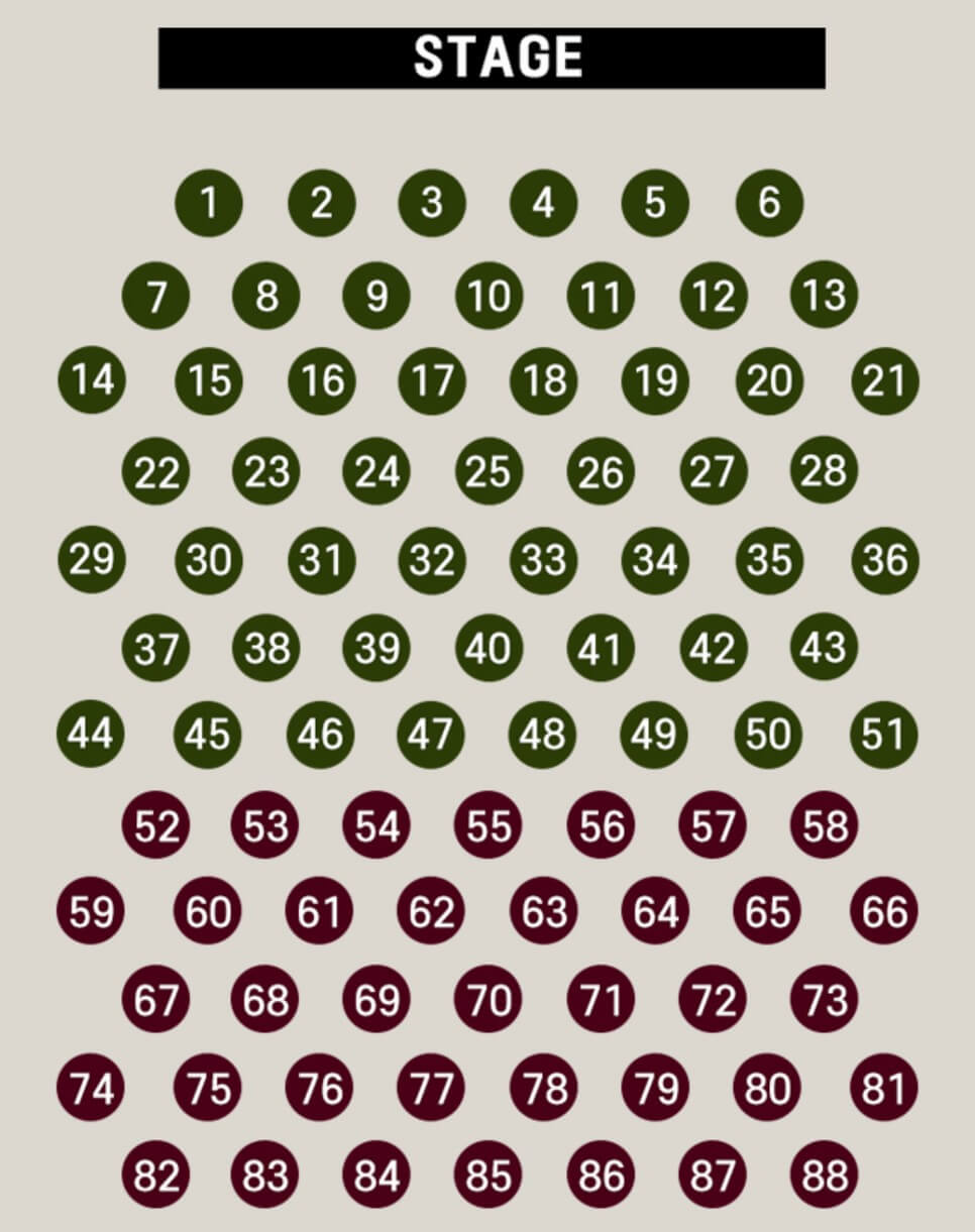 - 테이블 좌석번호는 예매를 돕기 위한 번호이며 실제 좌석과는 무관합니다.